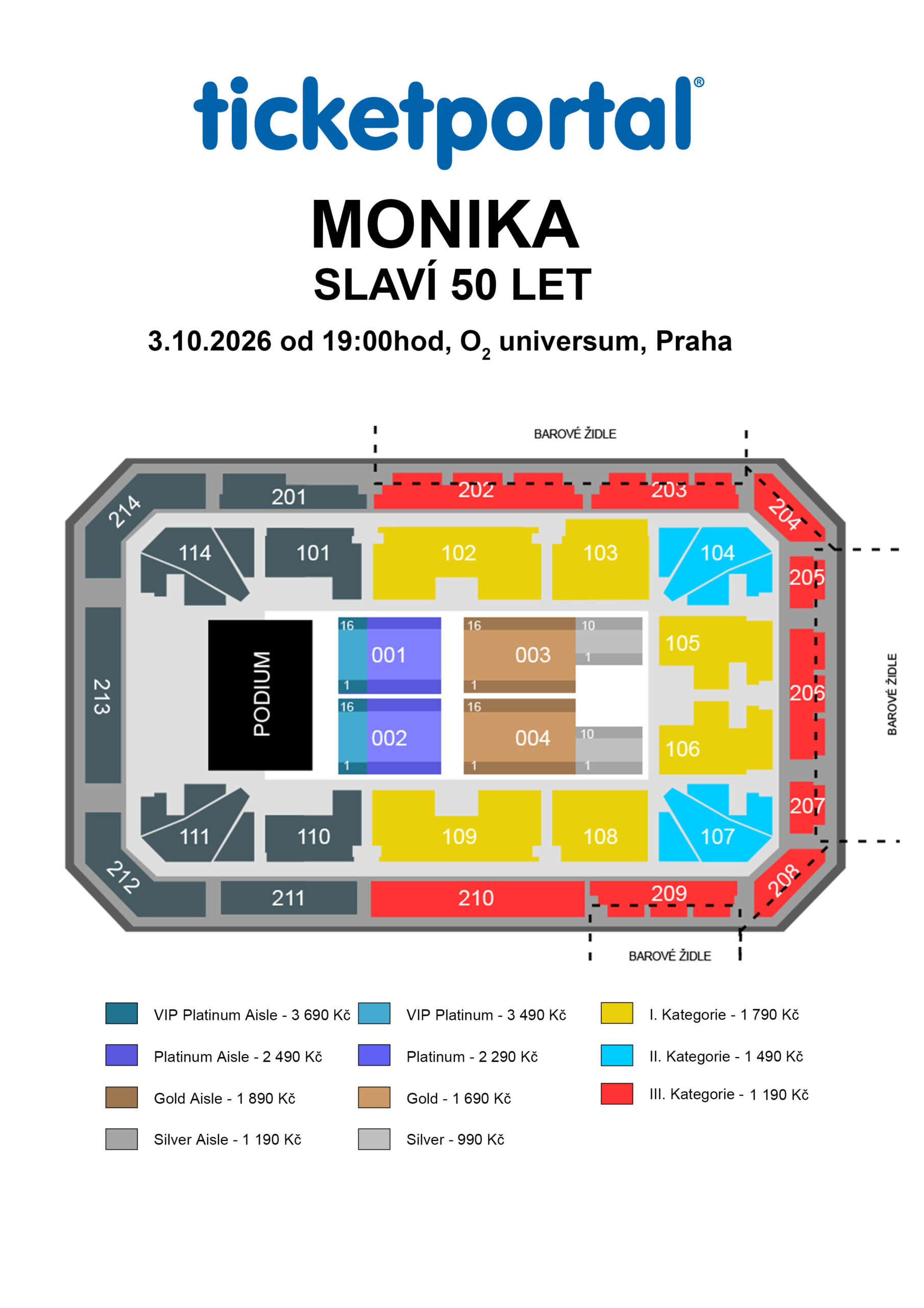 The concert MONIKA CELEBRATES 50 will take place on October 3, 2026, at the O2 universum Prague.