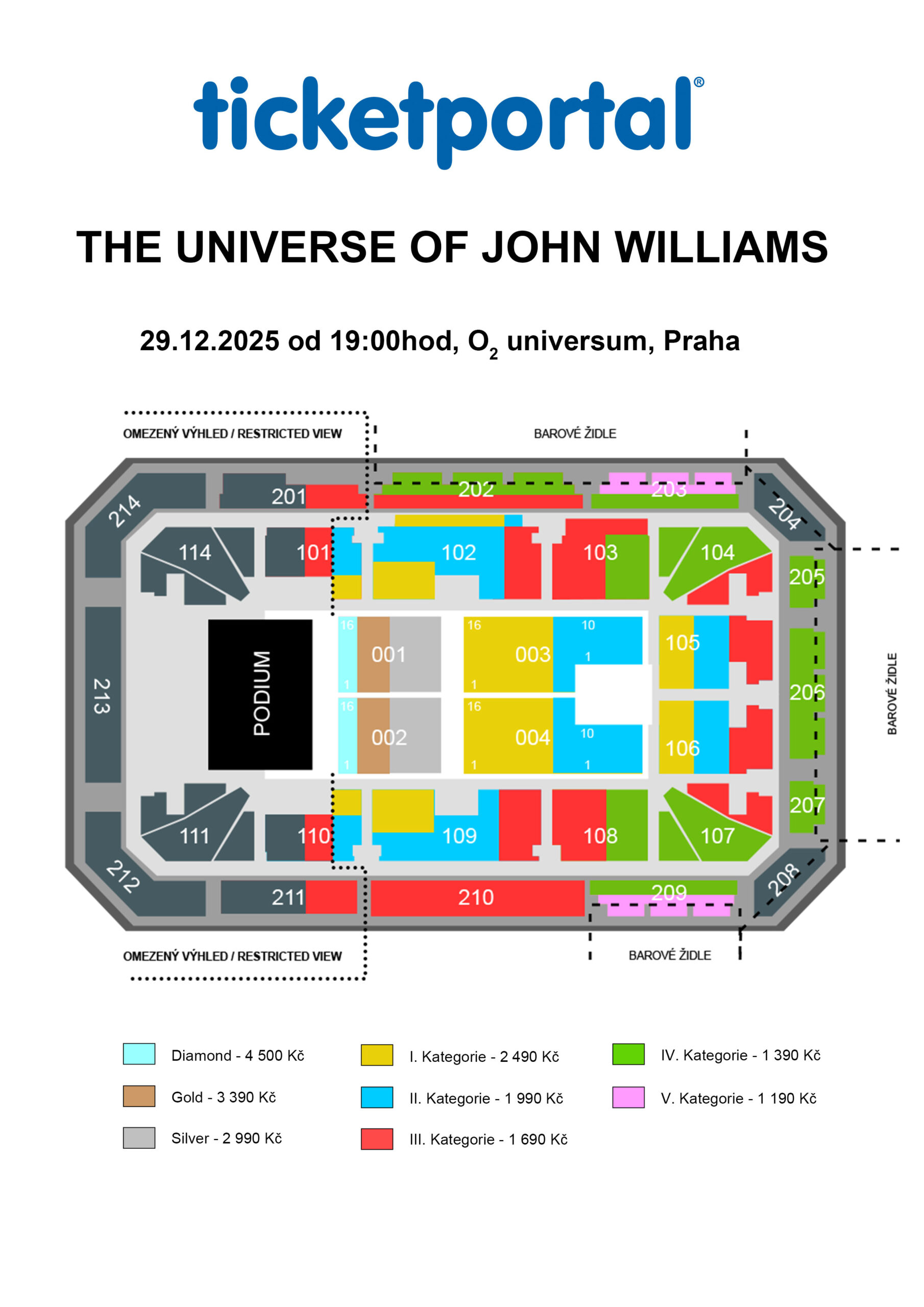 1 190 – 4 500 Kč Vstupenky pro držitele průkazu ZTP/P vozíčkáře objednávejte u společností Ticketportal (rezervace@ticketportal.cz) a Ticketmaster (ticket@ticketmaster.cz). |