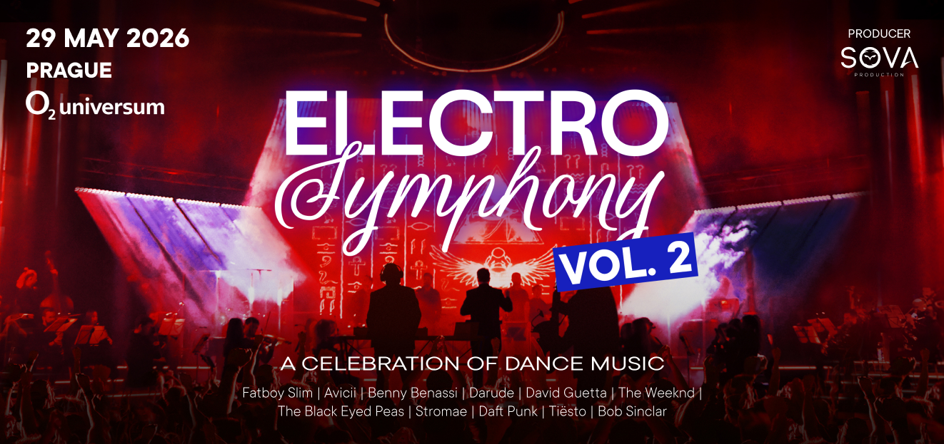 Tentokrát orchestr představí ještě více ikonických skladeb, které pokrývají všechny éry elektronické hudby — od 90. let až po dnešní největší hity. Skutečná pocta legendám elektronické scény — Fatboy Slim, Avicii, Benny Benassi, David Guetta, Daft Punk, Stromae, The Weeknd, Bob Sinclar, Tiësto a mnozí další — odvážně a emotivně znovu interpretovaná symfonickým orchestrem, živým DJem, zpěváky a rockovou kapelou. V roce 2026 se vracíme s úplně NOVÝM PROGRAMEM: Electro Symphony VOL. 2 — zcela nová show, nová odvážná kapitola ELECTRO SYMPHONY, vytvořená od základů, aby překvapila, dojala a nadchla naše publikum jako nikdy předtím!